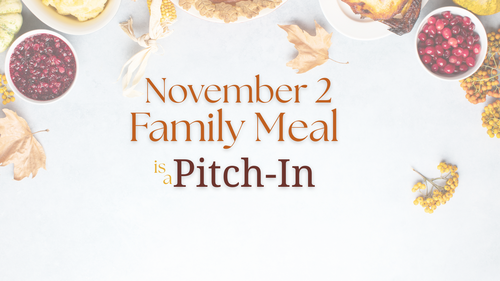 The November family meal is a pitch-in, where the church will provide the protein and rolls. Let us know what favorite fall side dish or dessert you plan to bring by clicking the button below.