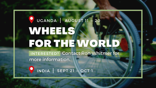 To learn more about Wheels for the World click here or contact Ron and Lisa Whitmer.