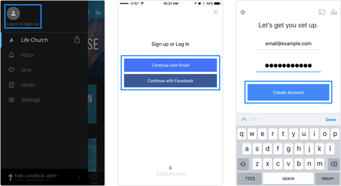 Note! If you already have an account with Subsplash Giving, you can use the same login information for Notes and Messaging.